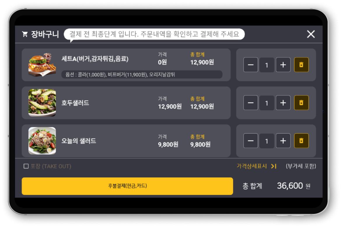 돈이 오고가는 테이블 오더 서비스는 첫째도 안정성, 둘째도 안정성입니다. 개발경력 25년 이상의 개발진이 만든 <메뉴몬>은 증권사 프로그램 수준 이상의 안정성을 담보합니다.